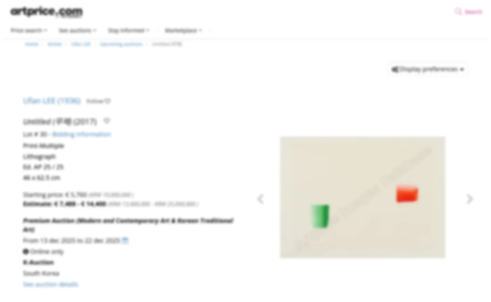 현대미술의 큰 특징 중 하나는 거래내역이 투명하게 남는다는 점입니다. 주요 옥션의 낙찰 결과는 각 옥션 사이트, 아트 프라이스 등의 플랫폼에서 누구나 쉽게 확인할 수 있어요. 언제, 어디서, 얼마에 팔렸는지 공개적인 데이터로 남으므로 이 작품이 과거에 어떤 가격대를 형성해 왔는지 객관적으로 확인할 수 있어요.