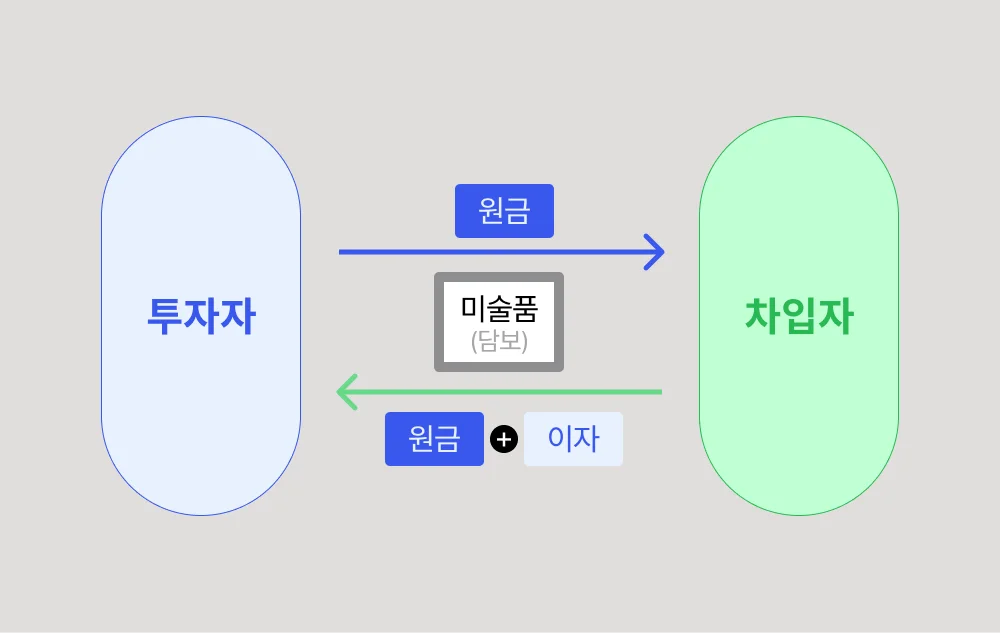차입자가 자신이 소유한 미술품을 담보로 대출을 신청하면 투자자는 차입자에게 돈을 빌려주는 대신, 차입자가 내는 이자를 가져가는 것이죠.